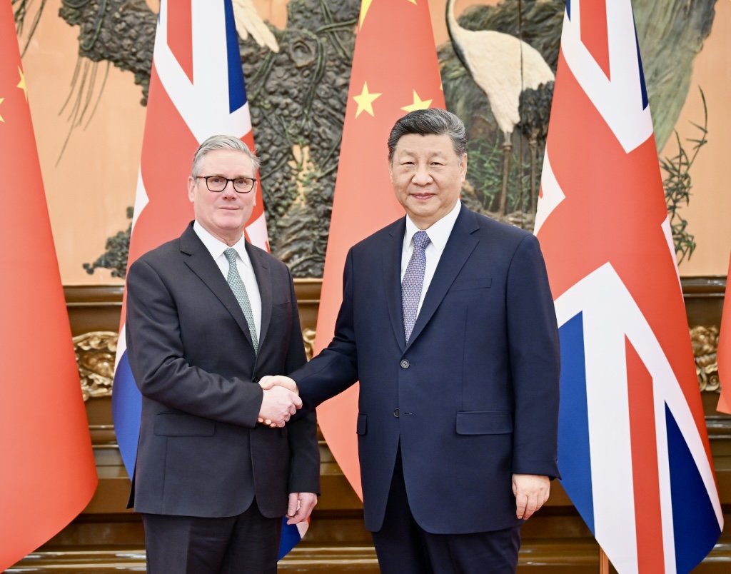 Starmer conveyed King Charles III’s greetings to President Xi, This visit, with a delegation of around 60 important representatives from British business and cultural organizations, demonstrates the breadth of Britain-China cooperation and Britain’s commitment to deepening and expanding ties with China, said Starmer. China plays a vital role in international affairs, and Britain would like to strengthen cooperation with China on climate change and other global challenges and jointly uphold world peace and stability.