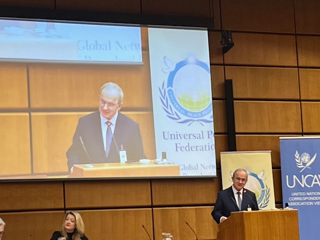 On January 30th, 2026, the “World Interfaith Harmony Week” was commemorated at the Vienna International Center with a conference on the theme of “the Relevance of Religions for a Peaceful World Order”, co-organized by the Universal Peace Federation, UNCAV, the Coalition of Faith-Based Organizations and other partnering organizations.